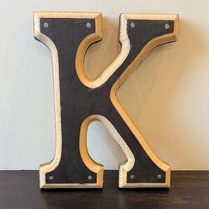 Stylish decorative letter K in black and tan. Perfect for home decor.