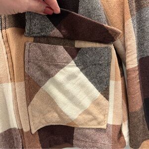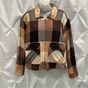 beachlunchlounge Plaid Jacket Top in Brown and Tan