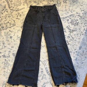 7 For All Mankind blackwash jeans with frayed, raw-hemmed ankles. Front and back seams. Great, versatile and stylish jeans!