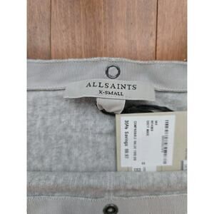 The AllSaints "Elle" Sweater in Gray is a stylish and versatile addition to any woman's wardrobe. Made of cozy cotton material, this pullover sweater features a flattering XS size and a classic gray color that can easily be dressed up or down. Perfect for layering or wearing on its own, this sweater is a must-have piece for the modern fashion-forward woman.