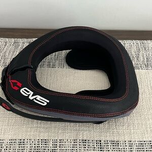 EVS R2 youth race collar black, gray and red stitching. Used only once! Neck brace is designed to prevent injuries to the spine in the neck while youth is riding!