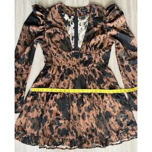 PrettyLittleThing Brown Black Print Long Sleeve Mini Dress Size US 8