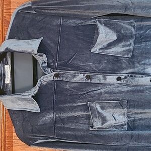 Elevate your style with this luxurious velvet blue shirt. Perfect for any occasion, this soft shirt offers both comfort and elegance. In like new condition, never worn.