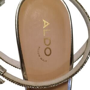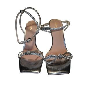 Aldo, Barrona, silver rhinestone strappy 4” heels Dressy, Formal, Bow, women 9
