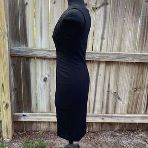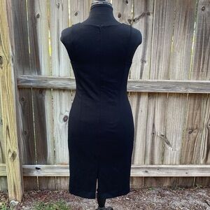 Black Halo sheath dress, textured center panel, size 8