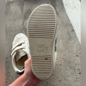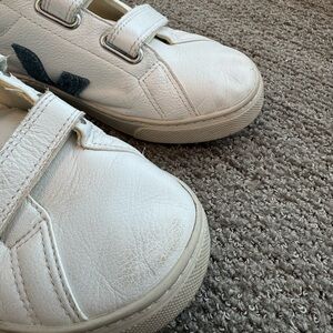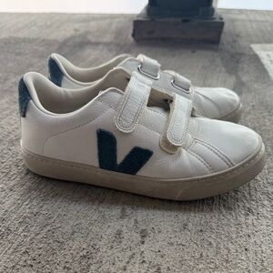 Veja sneakers for kids. White with navy details. Easy velcro straps.