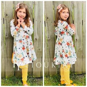 NWOT fioukiay Girls Fall and Winter Long Sleeve Floral Dress and Striped Legging