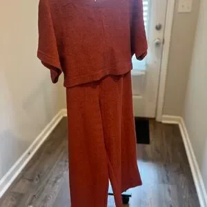 FREE PEOPLE Changing Tides Cotton Crop Top & Pants - Rust - NWT- XS