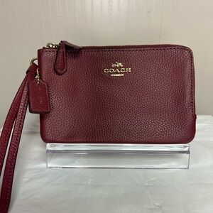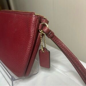 Elegant and stylish, this Coach wristlet in rich red leather is perfect for any occasion. Its compact design offers convenience and sophistication.