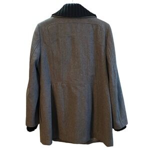 Calvin Klein Women's Gray Wool Blend Winter Pea Coat with Knit Collar and cuffs Size 14 Zip up and 3 Button Closure Fully Lined