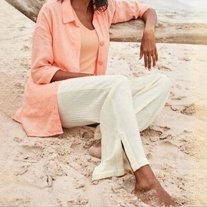 {Soft Surroundings} "Key Biscayne Wide Leg Full Length" Ivory Gauze Pants