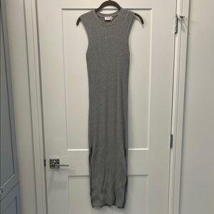 Frame Denim Heather Grey Rib Ribbed Knit Stretch Side Slit Midi Dress (size XS)