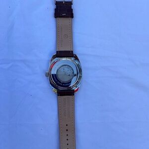This elegant watch features a silver dial and a rich brown leather strap, offering timeless style for any occasion. Not sure if it working correctly. Never worn