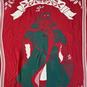 Goodwin Weavers Christmas Throw Blanket Old World Santa Red Green White Holly