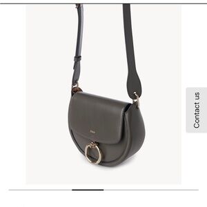 Chic Chloe crossbody bag in dark gray leather. Features a stylish flap and gold-tone ring detail. Perfect for everyday elegance.