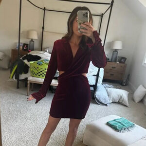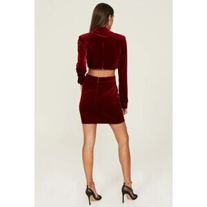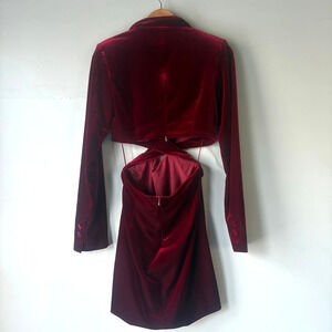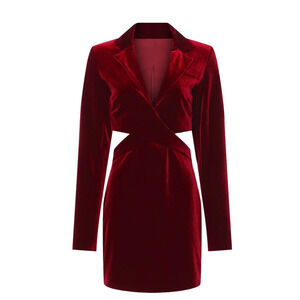 The classic blazer dress gets a sexy update in the oxblood velvet version by Nicholas featuring waist snatching cutouts.