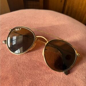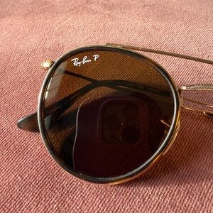 Elegant Ray-Ban sunglasses featuring a sleek gold frame and rich brown lenses. Ideal for stylish wear.