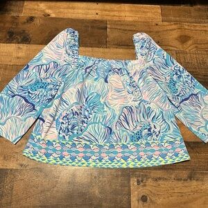 Ready for a summer day out, the Lilly Pulitzer® Lizzie Top feature a 3/4 sleeves with a square neckline as well as an all over beautiful aquatic pattern.