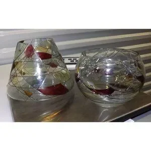 This set features a two-piece design of a vase and a lampshade, showcasing handcrafted stained glass patterns. The abstract mosaic enhances its artistic aesthetic.