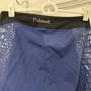 Navy blue leggings with reptile scale detailing. They are labeled Nikki B, not sure if they really are, as inside is not branded the same as the pink ones. Perfect for everyday wear.