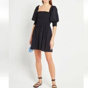 • Smocked bodice, puff sleeves, mini length