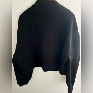 Brand new ZARA black varsity jacket with a modern cropped length and voluminous sleeves. Features a structured fit, snap-button front, and minimalist design—an elevated, contemporary twist on a timeless varsity style.