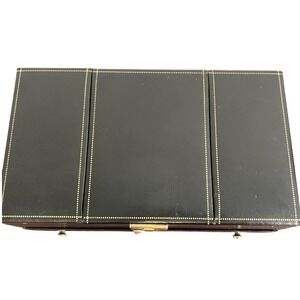 Vintage Multi-tier Jewelry Box Storage Black Leather Collectible