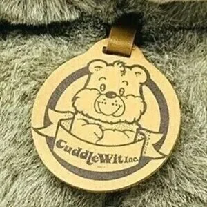 This item is a vintage Cuddle Wit Inc 18" tall beige plush cuddly sitting teddy bear with its tag in tact.