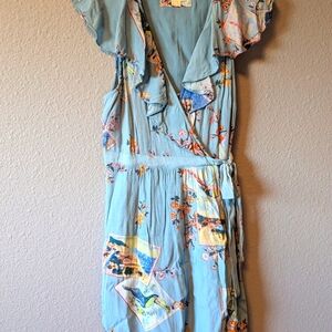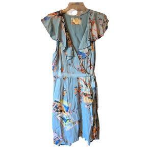 Maeve By Anthropologie Rosalia Ruffled Wrap Blue Floral Dress