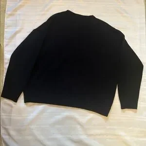 Pre-loved. A bit of pilling on the inside. Drop shoulders. Very stretchy. Stay stylish and comfortable with this black sweater featuring a bold American flag design. Perfect for casual outings and showing your patriotic spirit.