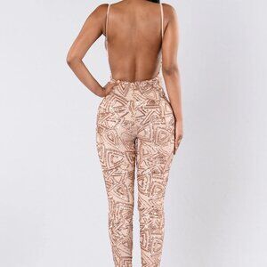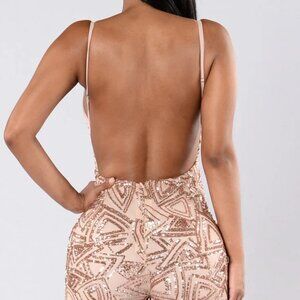 GLAMOUR GIRL BLACK NUDE SEQUIN JUMPSUIT