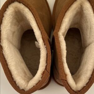 Cozy brown suede ankle boots with soft fur lining. Perfect for cold weather.