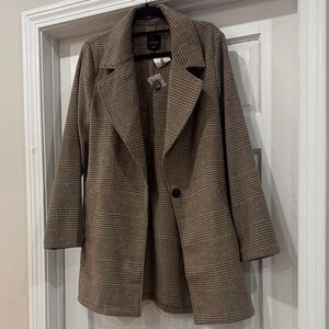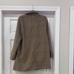 Stylish brown plaid coat perfect for any occasion. Stay warm and fashionable with this versatile piece. New and never worn! Smoke free and pet free home. Bundle and save