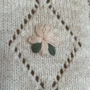 Romantic style cable knit sweater. Embroidered floral details. Crewneck with