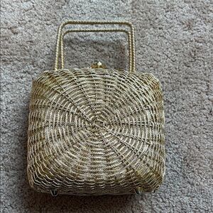 Vintage 1950s Koret Woven Gold Metal Handbag, Made In Italy, Textured And Smooth Gold Metal Purse, Evening Or Dressy Bag.