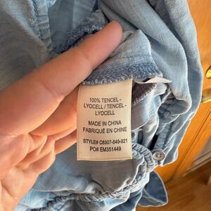 Keywords: Cloth & Stone, Jumpsuit, Womens Jumpsuit, Chambray Jumpsuit, Button Front Jumpsuit, Tie Waist Jumpsuit, Casual Jumpsuit, Lightweight Jumpsuit, Relaxed Fit, Summer Jumpsuit, Bohemian, Festival, Tencel Jumpsuit, Blue Jumpsuit