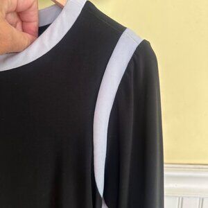 Black & White Long-Sleeve Sheath Dress With Ruched Waistline & Zipper Closure