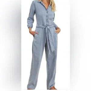 Elevate your casual style with this eco-conscious cotton denim jumpsuit from Billabong's The Salty Blonde collection. This one-piece features a relaxed fit, button-up front closure with coconut buttons, and an adjustable waist belt. The workwear-inspired style comes in a beautiful blue hue perfect for any season.
