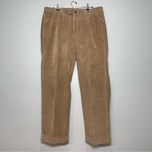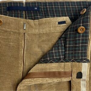INCOTEX Men's Tan Corduroy Pants Cotton Cashmere Cuff Hem Flat Front Size 38