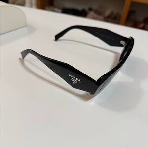 Bold Prada sunglasses with a geometric frame. Sleek black design for a modern look.