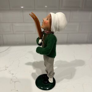 Byers Choice vintage caroler 1995. Auburn haired girl with wood skis. Piece is numbered and it is hard to read. See photo. Appears to be #11 of 100. Lovingly cared for and stored by original owner.