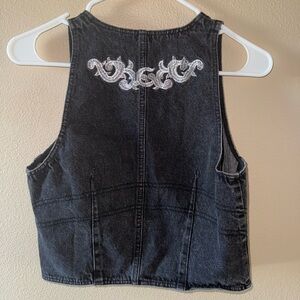 Blueb Embroidered Black Denim Vest