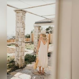 Step out in style with this elegant cream midi dress. Perfect for any occasion, this dress offers a chic and comfortable fit. A must-have addition to your wardrobe.