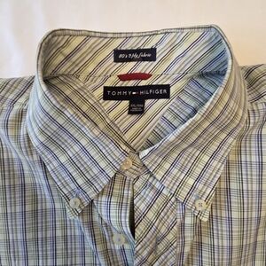 TOMMY HILFIGER 80's 2 Ply Fabric Shirt Mens XXL Button Down Short Sleeve multicolored plaid stripes. Pre-owned, very good condition! Fast Shipping!!