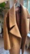 This wool coat is super stylish in a beautiful Caramel shade with an iridescent brown lining!