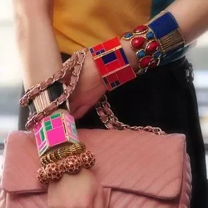 NWT RARE Chic AMRITA SINGH Sylvana Waterfall BRACELET in Evergreen/Gold colors. A gold-tone brass stretch bracelet with colored enamel detailing. Hypoallergenic. See pics for details. This is a STUNNER! Just GORGEOUS!