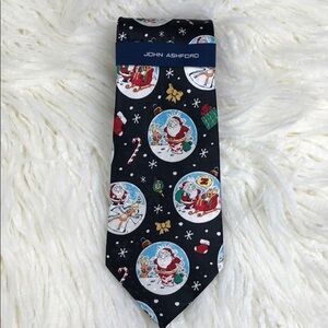 NWT Silk Tie Santa Tie Christmas Tie John Ashford Santa Christmas Holiday Black