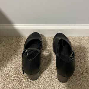 Chic black mules with a stylish strap. Comfortable and versatile.
