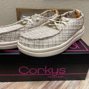 Beige tweed slip-ons by Corkys. Easy to wear. Perfect for everyday style.