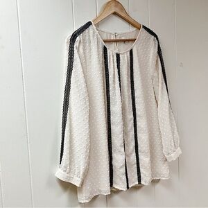J. CREW Black Lace Trim Cream Swiss Dot Blouse with Long Sleeves Lined